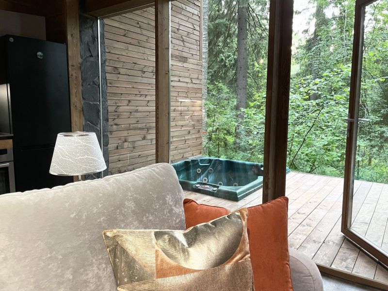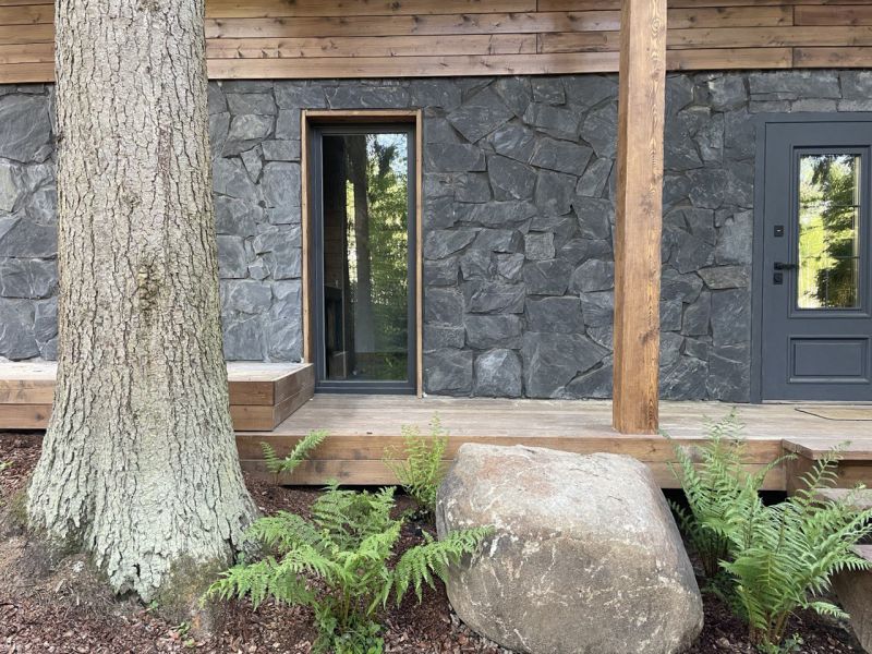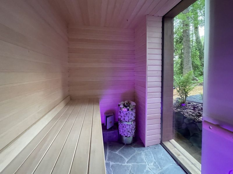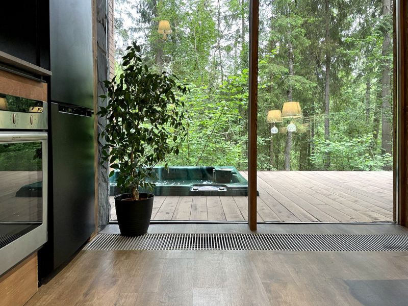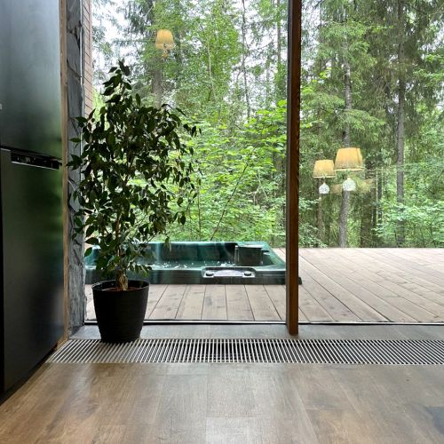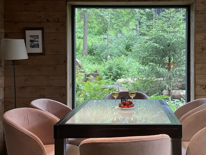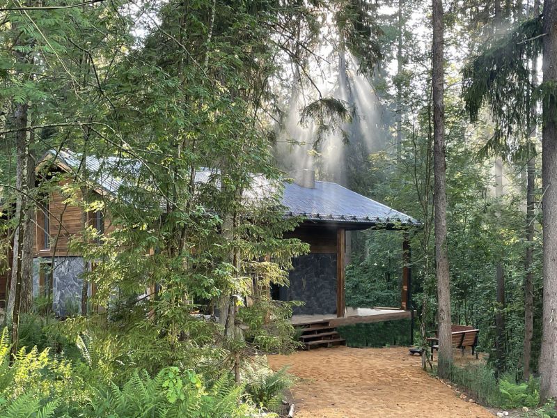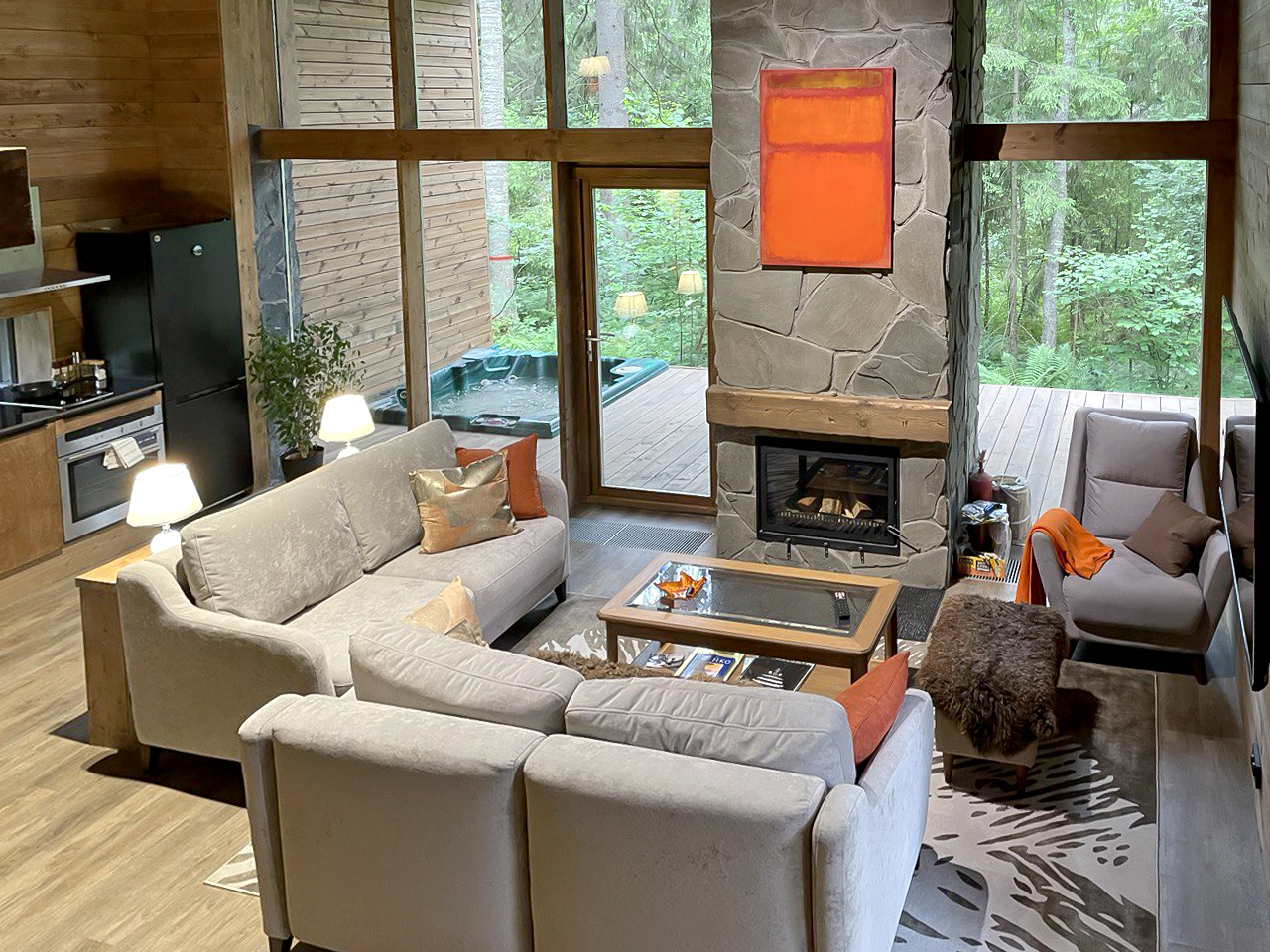 Особое внимание уделено эксклюзивным объектам для отдыха. Уютную атмосферу создают камины — один внутри дома и второй на просторной террасе. На террасе же расположен SPA-бассейн (джакузи) с гидромассажем и аэромассажем, где можно расслабиться с потрясающим видом на лес. Для глубокого очищения и восстановления энергии предназначена сауна с кварцитовым камнем и возможностью ароматерапии.